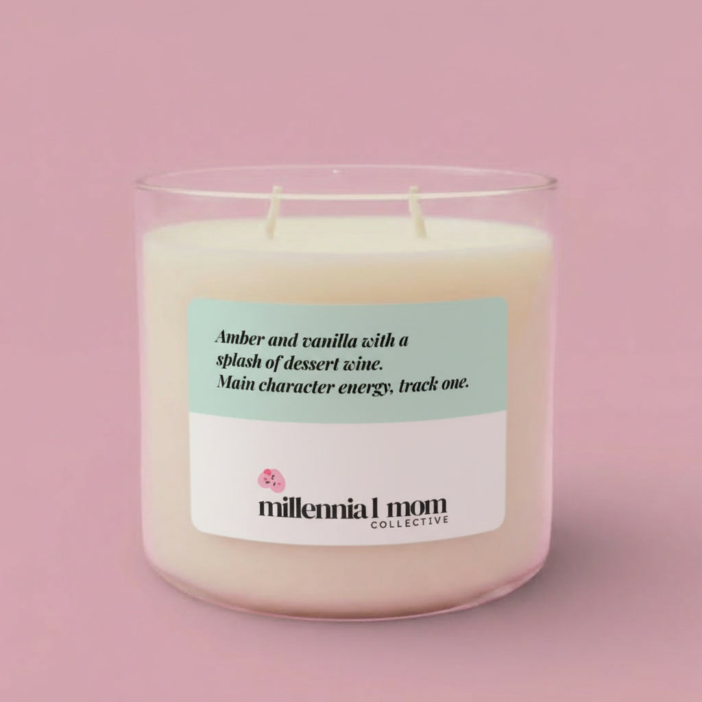 Main Character is the candle for moms who've been curating their vibe since 2003. A warm, confident blend of golden amber, creamy vanilla, and a crisp dessert wine note that feels cozy with just the right amount of edge.